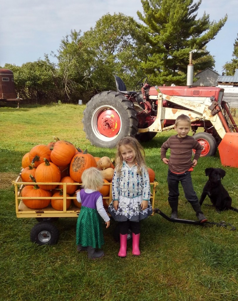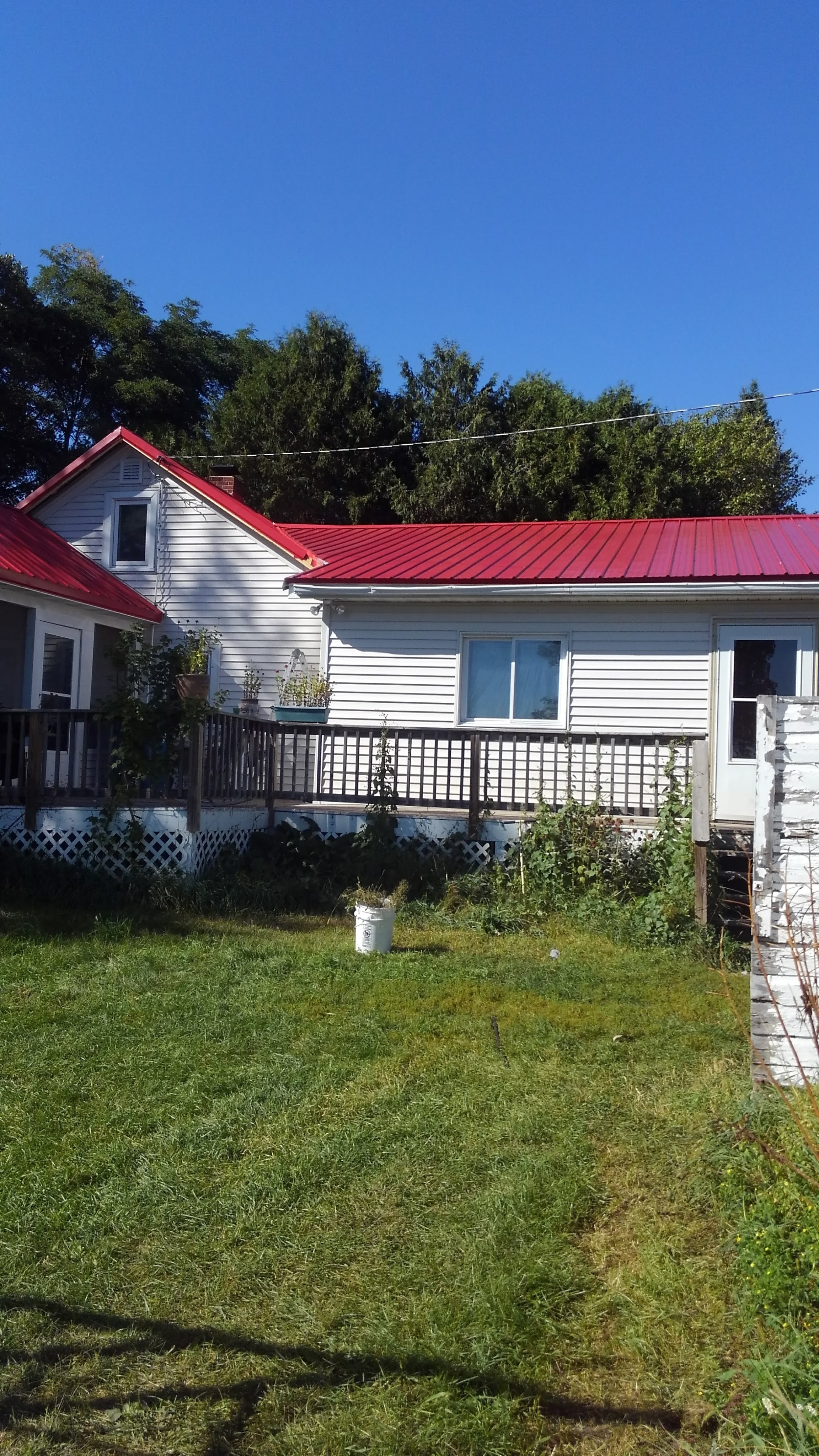 Finally!! We have had the tin for this project for four years now. I asked my cousin Jake to come out and help Trenton put the tin on the roof labor day weekend but that didn’t quiet work out. Jake went to help a stray cat out of the road and it sank it’s teeth into his right hand. Cat bites are worse than dog bites and his hand swelled up and turned red. He needed a few weeks healing time which gave Trenton time to put roof jacks up, get ladders set and get all the materials ready to go. Jake came out Friday afternoon and Aunt Candy watched the girls while Lucian and I were at school so they could get it done. Only the top tier of the barn needed to be done so they were able to finish it by dinner time. It was very high up and the new tin was pretty slippery so I am thankful for a cousin who will help out with big projects for the price of fish fry and a few pumpkins.